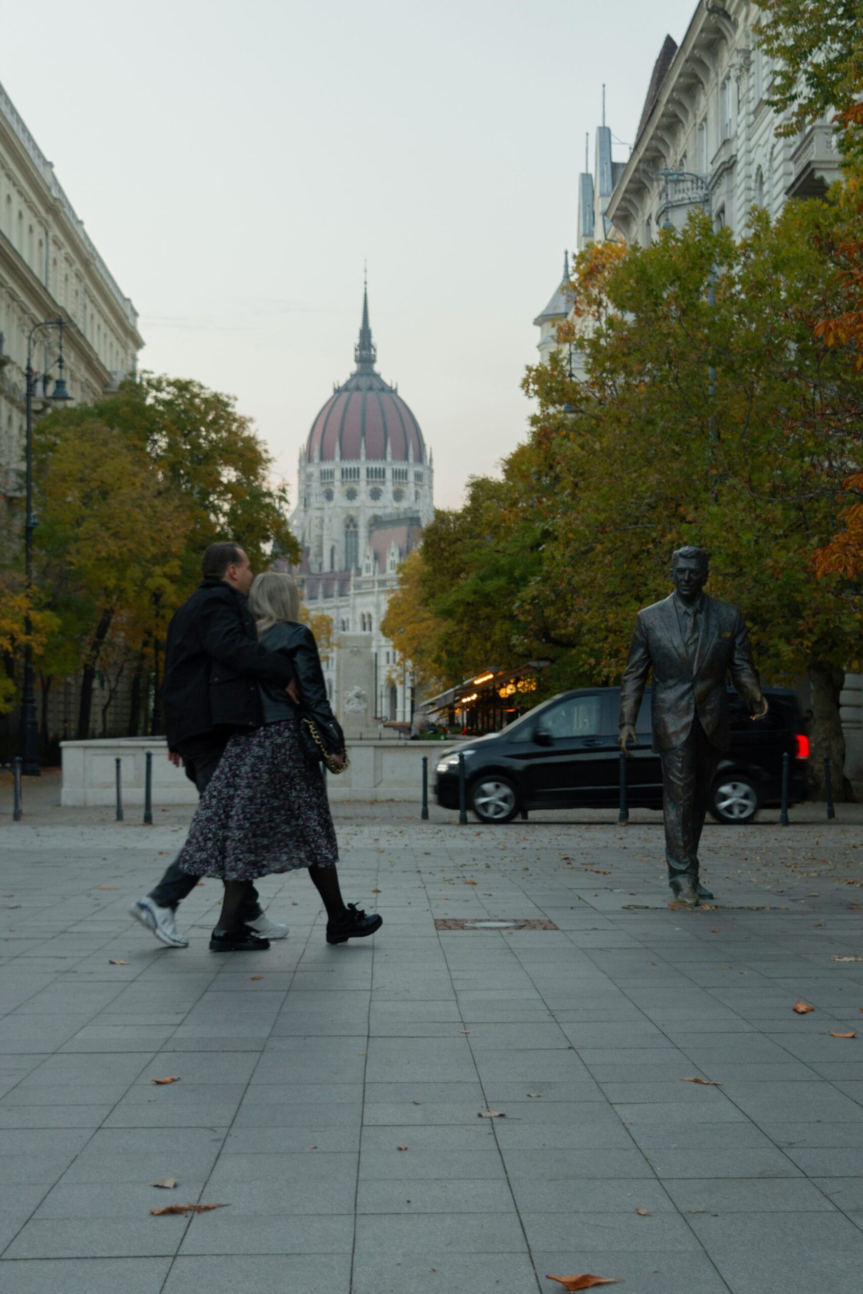 Ronald Reagan statue in Liberty Square Budapest with the Hungarian Parliament in the background
